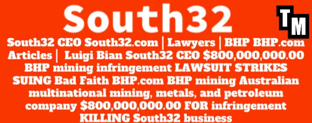 South32 CEO South32.com | Lawyers | BHP BHP.com Articles | Luigi Bian South32 CEO $800,000,000.00 BHP mining infringement LAWSUIT STRIKES SUING Bad Faith BHP.com BHP mining Australian multinational mining, metals, and petroleum company $800,000,000.00 FOR infringement KILLING South32 business