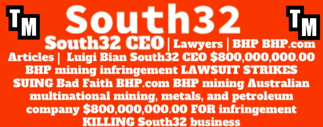South32 lawyers Suing Australian BUSTED BHP BHP.com $800,000,000,000.00 Billion Dollars | South32 - Lawyers | Articles - Lawyers - Press Releases Archives.